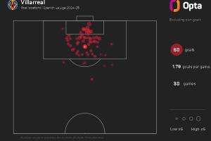 据统计,比利亚雷亚尔本赛季西甲已经打进70粒进球,超越04/05赛季的69粒进球,创造了队史单赛季西甲进球数纪录。