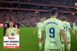 体育资讯5月26日讯 西甲第38轮,巴萨vs毕尔巴鄂竞技。莱万双响建功,并两次错失戴帽良机,亚马尔中柱,奥尔莫造点&点射,最终巴萨3-0毕尔巴鄂。莱万获评本场最佳球员。