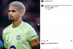 赛后,巴萨队长阿劳霍更新社媒赞赏球队收官战的比赛态度:球队以严谨态度收官本赛季,收获胜利✅🔥 巴萨加油! 🔵🔴🦍