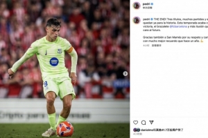 赛后,佩德里更新社交媒体对本赛季圆满收官发表感言:“一切已落幕!三个冠军、无数比赛与情感已载入史册。本赛季以又一场胜利收官,佩戴巴萨队长袖标,怀揣比以往更强烈的信念迈向未来。”