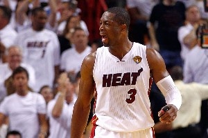 韦德,2005年5月25日,东决G2,热火92-86力克活塞。韦德末节14投9中,拿下20分4篮板率队捍卫主场。