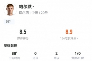 体育资讯5月29日讯 欧协联决赛,切尔西4-1贝蒂斯夺冠。此役帕尔默首发出战88分钟发挥出色,球员全场重点数据如下↓