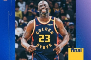 赛后勇士官方赢球海报封面人物给到了追梦格林。