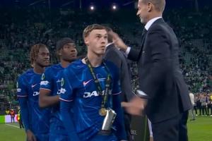 帕尔默当选欧协联决赛最佳球员,赛后将最佳球员奖杯塞在裤裆里