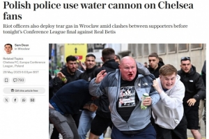 体育资讯5月29日讯 据《每日电讯报》报道,在波兰弗罗茨瓦夫举行的欧协联决赛前,切尔西和皇家贝蒂斯的球迷发生了暴力冲突。