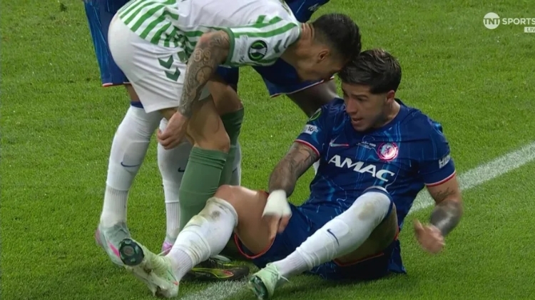 比赛第88分钟,恩佐带球被安东尼铲倒,主裁向安东尼出示黄牌,恩佐痛苦倒地。慢镜显示,安东尼上前伸手被拍开,安东尼用头顶恩佐,随后双方爆发了冲突。