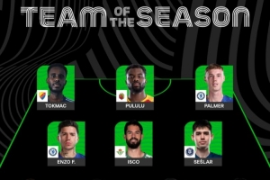 体育资讯5月29日讯 欧协联官方最佳阵出炉,切尔西4人、贝蒂斯3人入选,帕尔默、伊斯科、戈森斯在列。