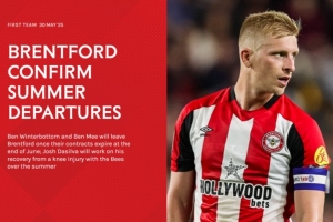 体育资讯5月30日讯 近日,布伦特福德在官网确认,本-温特博托姆和本杰明-米将在6月30日合同到期后离开俱乐部。约舒亚-达席尔瓦的合同也将于6月30日到期,但他将继续在康复中心进行康复训练。