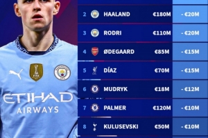 德转英超身价跌幅榜:福登3000万欧最多,哈兰德&罗德里在列