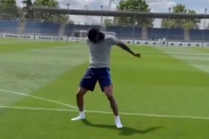 体育资讯5月31日讯 今日美媒TrendingSportsPodcast晒出雷霆球星亚历山大踢足球的片段,其中后者骗过好友维尼修斯把球罚进后模仿了C罗的SIUUU庆祝动作,并模仿了哈登的撒盐手势。