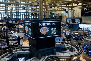 今日全球金融核心纽约证券交易所官方晒出一张机构的内部照片,显示屏上显示:“尼克斯七场拿下!”