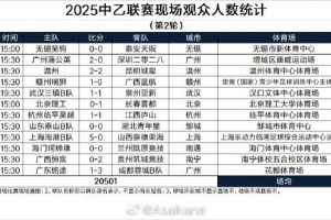 体育资讯3月31日讯 据德转中国区管理员朱艺统计,中乙第2轮场均现场观众1708人,四场比赛观众超千人,其中泰山B队主场8113人最多。