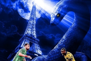 北京时间明天凌晨,两队将在欧冠决赛碰面,法甲晒出巴黎铁塔与巨蛇的海报,并@了意甲联赛。