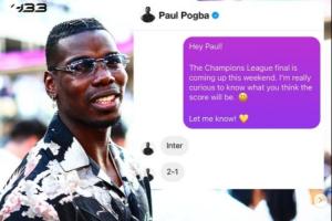 其中现在为自由球员的法国中场博格巴的预测为:2-1,国米获胜。