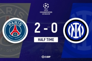 上半场比赛结束,巴黎圣日耳曼暂时2-0领先国际米兰。