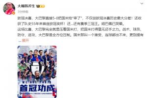 体育资讯06月01日讯 巴黎5-0横扫国米夺冠,赛后,韩乔生发文点评。