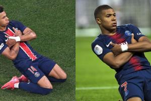 杜埃开场20分钟便完成传射,他在进球后模仿姆巴佩抱胸滑跪庆祝。