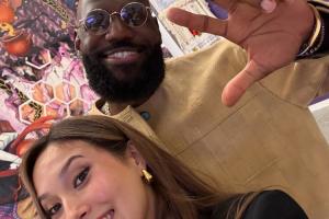 谷爱凌近期还偶遇了詹姆斯,两人也合照了一张。