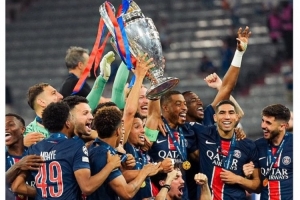 体育资讯6月1日讯 欧冠决赛,巴黎5-0击败国米,捧起冠军奖杯。