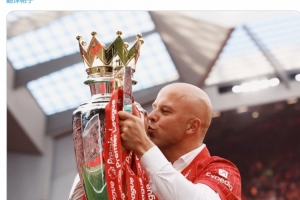 利物浦官方社媒晒出斯洛特亲吻英超奖杯的照片,庆祝他执教球队一周年。