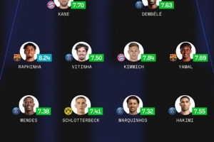 体育资讯6月1日讯 本赛季欧冠战罢,数据网站Sofascore也评选出本赛季欧冠场均评分最高阵容,其中登贝莱领衔巴黎5人在列,具体如下: