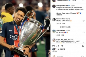 巴黎队长马尔基尼奥斯更新社媒晒照并配文写道:早上好啊!巴黎的乡亲们…今天起床什么感觉?🥴毕竟咱们可是欧洲冠军了!❤️🏆💙