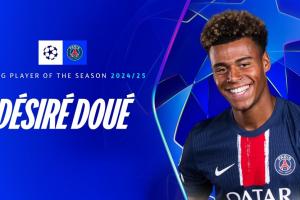 体育资讯06月01日讯 欧足联官方消息,19岁巴黎边锋杜埃当选欧冠赛季最佳年轻球员,本赛季欧冠他共出战16场比赛,贡献5球4助。