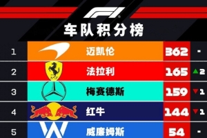 体育资讯6月2日讯 F1西班牙大奖赛结束,迈凯伦车队包揽前二,他们在车队积分榜的领先优势扩大至197分,法拉利车队上升2位来到第二。