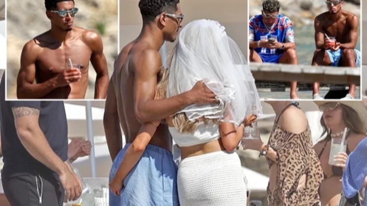 体育资讯06月02日讯 《太阳报》报道了贝林厄姆的度假情况,贝林与一位带头纱的准新娘拍照时,被抓住臀部。