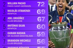 体育资讯6月2日讯 2024-25赛季的欧冠已经落下帷幕,巴黎圣日耳曼以5-0的比分大胜国米夺冠。Squawka统计出了欧冠多项数据排名情况,巴黎圣日耳曼两名后卫位居解围榜前二,马尔基尼奥斯92次断层领先,帕乔72次位居次席。