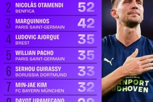 体育资讯6月2日讯 2024-25赛季的欧冠已经落下帷幕,巴黎圣日耳曼以5-0的比分大胜国米夺冠。Squawka统计出了欧冠多项数据排名情况,卢克-德容以69次位居高空球争抢榜榜首。