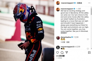 体育资讯6月2日讯 维斯塔潘更新社媒,谈到了西班牙站正赛的碰撞事故。