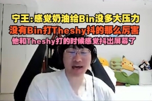 Ning解说比赛后点评:感觉奶油给Bin没多大压力,没有Bin打Theshy抖的那么厉害,他和Theshy打的时候感觉抖出屏幕了。
