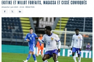 体育资讯6月3日讯 法国足协官方消息,法兰克福前锋埃基蒂克、斯图加特中场恩佐-米洛退出法国U21,该队主帅巴提科决定征召摩纳哥中场马加萨、雷恩中场德贾伊-西塞。