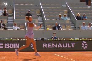 体育资讯06月03日讯 法网1/4决赛郑钦文vs萨巴伦卡,郑钦文第三局破掉萨巴伦卡发球局,首盘目前2-1领先!