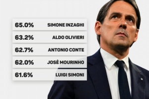 体育资讯6月3日讯 罗马诺已经宣布小因扎吉即将执教利雅得新月,而在国米历史上,小因扎吉是带队胜率最高的主帅。