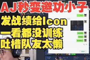 体育资讯3月31日讯 今日AJ开播打排位备战传奇杯,三连胜后立马把战绩发给队长icon,结果一看都没训练,吐槽队友太懒!
