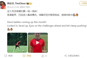 体育资讯6月4日讯 今日,蓉城队长周定洋更新社媒,晒出自己的训练照和球鞋展示小视频。