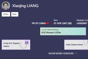 女子100米:梁小静位列亚洲第一,世界第32↓