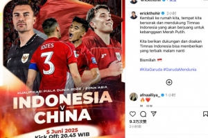 印尼足协主席托希尔更新社媒,晒出本场比赛的海报,并配文写道:“回到我们的主场,让我们为肩负国家荣誉的印尼队加油助威吧!希望通过我们的支持,帮助印尼队今晚取得理想结果。”