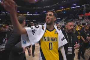 赛后,哈利伯顿在场边表示:“感谢教练的信任!他没有叫暂停,成就了我们!我们一直相信着!在比赛时间走到0之前我们都不会放弃!”