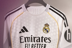 皇马官方发布了2025-2026赛季主场球衣,这款球衣由阿迪达斯设计,以经典的白色为主色调,球衣正面采用细腻的点状纹理,两侧带有金色线条,为球衣增加层次感。