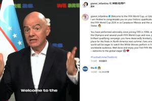 值得一提的是,这些祝贺视频都是赛后立即发出的,明显是提前录制的。每一个国家的贺词也不一样,因凡蒂诺祝贺韩国是连续晋级,而乌兹别克斯坦和约旦是首次晋级创造历史。