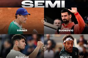 明天凌晨1点,另外一场半决赛将在世界第一辛纳和38岁的德约科维奇之间展开!