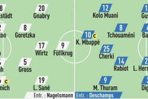 体育资讯6月8日讯 今晚,德国和法国将在欧国联季军决定战中碰面,《队报》赛前预测了两队首发。