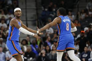 这是雷霆本赛季第49次净胜对手两位数,超越2016-17赛季的勇士,独占历史第二,仅次于1971-72赛季的湖人(50场)。