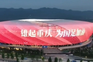 据重庆广电集团官博报道,龙兴足球场已换上“新皮肤”,球场已经亮起中国红,滚动播放“雄起重庆,为国足加油”字样,氛围感拉满。