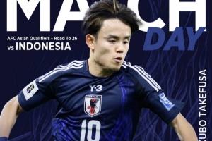 日本国家队于今天上午在官推公布了本场比赛海报,久保建英单人入镜。日本队官推配文写道:“世界杯预选赛亚洲区第三阶段比赛最后一战。让我们在主场为日本队造势吧。”