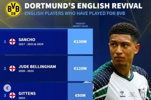 体育资讯6月11日讯 多特已经官方宣布签下小贝林厄姆,据悉基础转会费3050万欧元,《转会市场》也列出了多特近年引进的英格兰球员在效力期间最高身价情况。