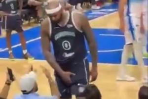 体育资讯06月11日讯 昨日波多黎各联赛,考辛斯与场边球迷爆发大规模冲突,考辛斯先是被挑衅后抓自己下体回击,随即险些与场边球迷爆发肢体冲突;又在被驱逐出场时回击球员通道两旁的球迷,反被球迷泼饮料,场面一度十分混乱。